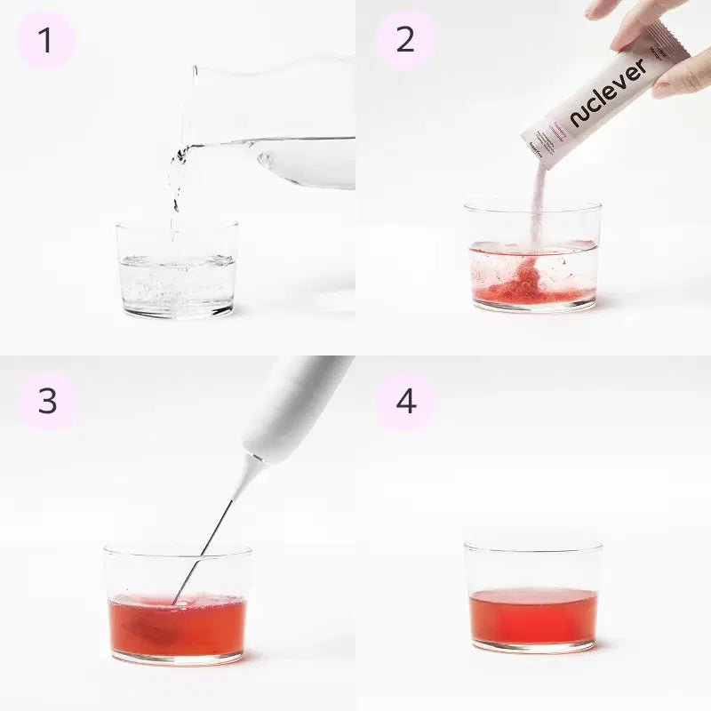 Ouvrez un sachet Nuclever et versez son contenu dans le verre.
